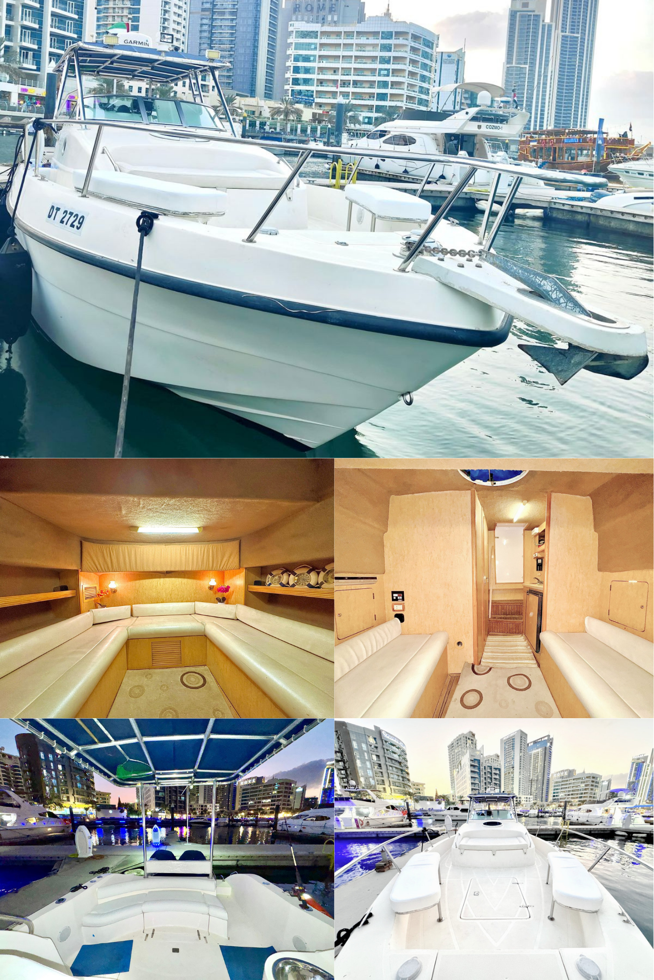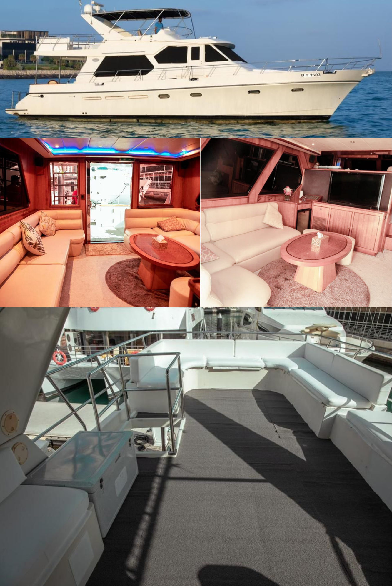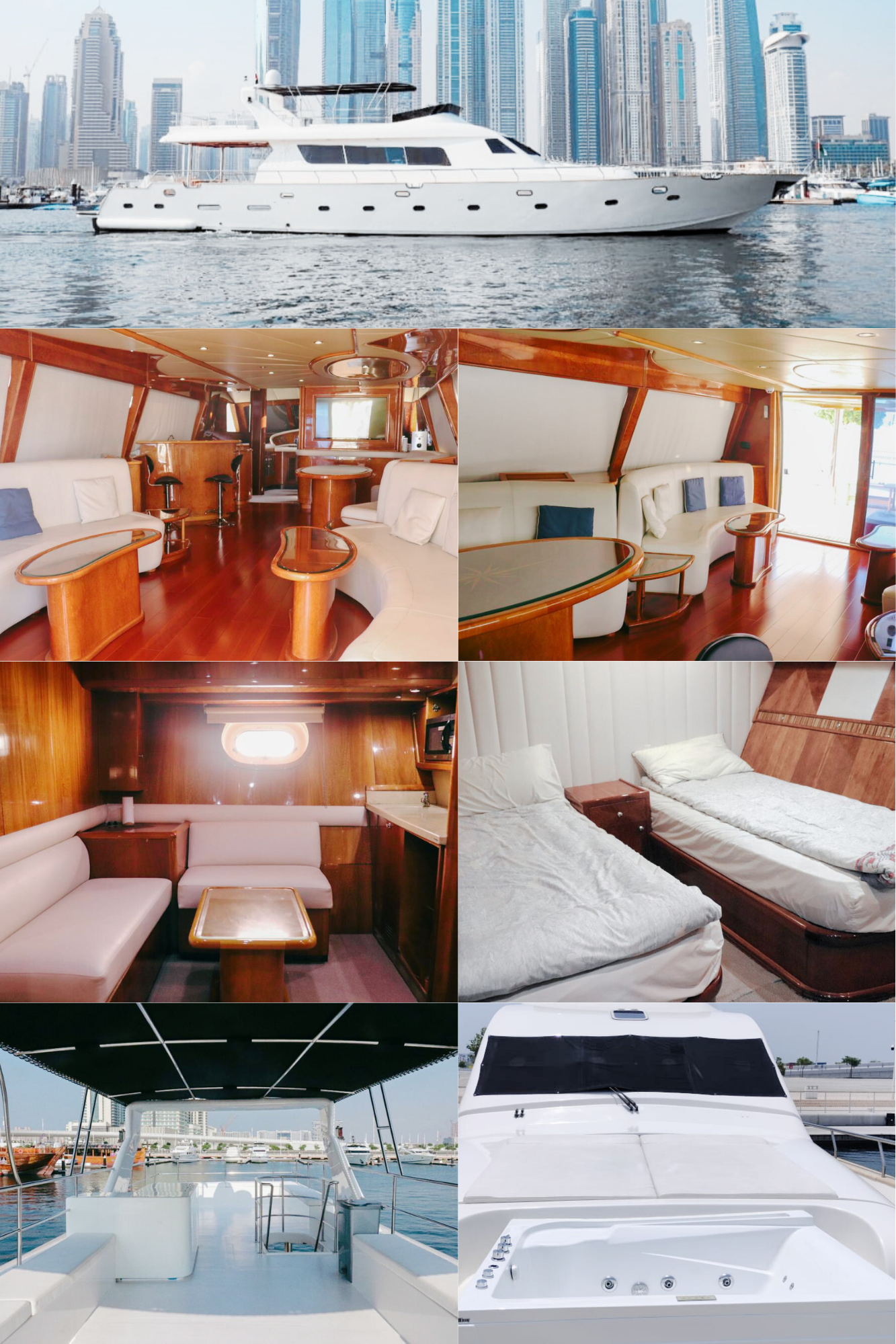 9Our company is pleased to offer you the Top brand Princess 60 Feet Luxury Air-conditioned double deck Yacht good for 20 Guest Capacity with a 3 bedrooms Spacious lounge, 2 washrooms, kitchen, satellite television with a music system as well. Our price is Aed 899 per Hour only. Our offer includes water, soft drinks and ice along with music system and a Fully Air-conditioned yacht and you are allowed to bring your own food and drinks in the yacht also.